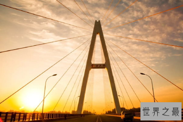 这座天津大桥在北京特大桥和沧德特大桥之间,天津大桥于2006年开工,2010年竣工。跨度超过 113 公里,是世界上第一座跨越100公里的桥梁。