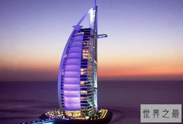 阿拉伯塔酒店位于波斯湾内的人工岛上,其形状酷似帆船,所以也叫迪拜帆船酒店,是世界唯一7星级酒店,其高为320.96米,一共有56层,非常的繁华。