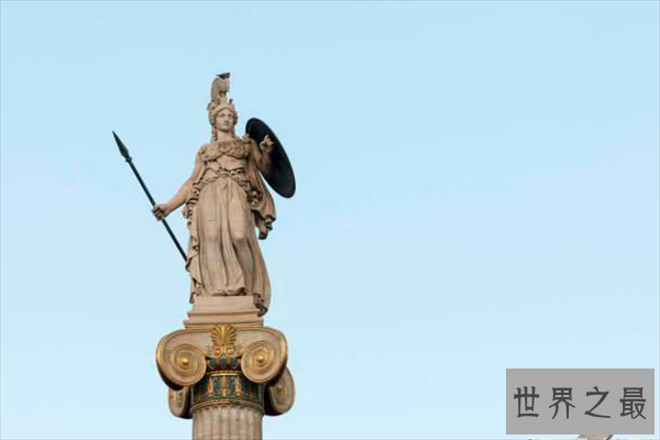雅典娜神像是由菲迪亚斯在公元前438年雕刻的香木雕塑,虽然材料以木头为主,但身上镶嵌着象牙和黄金,全身高度长达13米,但它的原作在拜占庭时代被毁,目前收藏的是大理石临摹品。