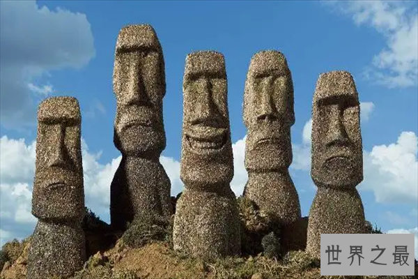 复活节岛石像位于复活节岛,建造时间在公元前1100年-1680年,数量较多,大概有1000多尊,因形状不一样,所以大小也不一样,最长可达23米,也是世界十大巨型雕像之一。