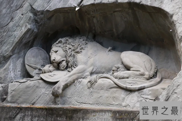垂死狮子像位于瑞士卢塞恩湖附近,也是世界著名的纪念碑雕塑之一,主要是为了纪念在1792年保卫法国的战斗中牺牲的瑞士士兵。垂死狮子像全长10米,高6米,在1818年开始雕刻,于1821年雕刻完成。