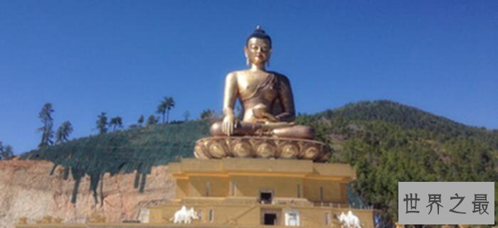释迦摩尼雕像坐落在不丹境内,由由青铜和镀金金制成。它的建立是为了实现一个古老的预言,即一旦在这个地方建造了一座雕像,和平与幸福的光环就会传遍整个世界。