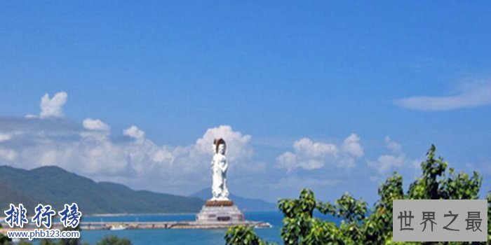 这尊108米高的菩萨观音雕像位于中国南海的海南岛屿上。雕像有三个方面,一面朝向内陆,另外两面朝南海。这座雕像花了6年时间建造,并于2005年完工。