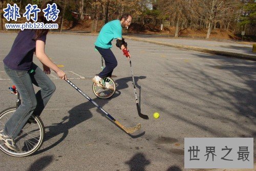这项运动十分怪异而有趣,参赛者需要再是用木槌将球击入对手的目标的同时,保持周期的平衡。假如心情不好的时候,还是可以去看看的。