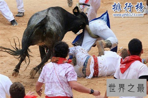 斗牛运行是另一种怪异的冒险运动,他们将愤怒的公牛放在街道上,参与者在它们面前奔跑,实际上很多事情是不可控的,每年约有300人在这种运动中受伤,甚至有几人在这场运动中死亡。