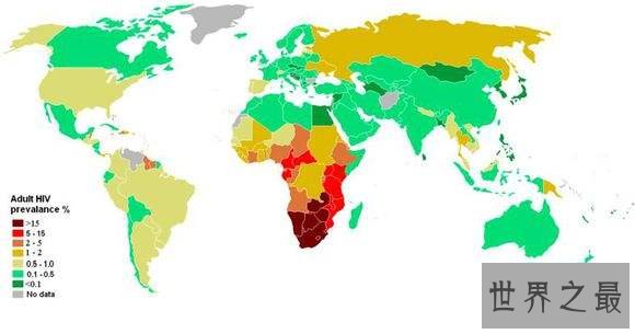艾滋病全球分布图