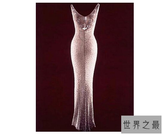 要说世界上最贵的衣服当然要穿在女神身上。果不其然这件世界上最贵的衣服是玛丽莲.梦露在1962年5月19日肯尼迪总统生日那天穿的世界上最贵的衣服。据说当时梦露没穿任何内衣,就像缝在梦露身上一样。1999年这件礼服以126.75万美元的天价售出。