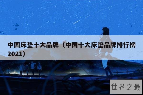 1.穗宝 (中国名牌,床垫 十大品牌,国家免检产品,最具影响力的床垫企业,中国500家最佳经济效益工业企业家具制造业第1位,国家质量奖(家具类最高奖),连续40年产销量、利税总额及市场占有率居全国同类产品第一位 广东省著名商标, 知名的大型综合性家具 集团,穗宝集团) 2.喜临门(中国驰名商标,中国名牌,中国民营企业国际竞争力50强,高新技术企业,喜临门 集团) 3.雅兰(香港名牌,香港十大名牌称号,中国环保标志产品,雅兰实业(深圳)公司) 4.晚安(湖南名牌,湖南省晚安家居实业有限公司) 5.吉斯(中国驰名商标,中国名牌,绿色环保产品,十大床垫品牌,烟台吉斯家具集团有限公司) 6.皖宝 (安徽名牌,安徽省著名商标,安徽省明星企业,合肥皖宝集团床垫有限公司) 7.爱舒(床垫十大品牌,中国著名床垫企业,上海第一床垫品牌,上海爱舒床垫有限公司) 8.联乐(中国驰名商标,中国名牌产品,中国十大床垫品牌,湖北省著名企业,联乐集团有限公司) 9.花为媒 (中国驰名商标,中国名牌,床垫十大品牌,浙江名牌,浙江省著名商标,浙江花为媒集团) 10.梦神(中国驰名商标,浙江省著名商标,中国家具行业床垫知名品牌,宁波梦神床垫机械)