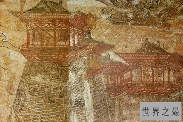 唐阙楼图是十大国宝级唐代文物之一,是于1971年在陕西乾县懿德太子墓出土的陕西国宝级文物,阙楼仪仗图共两幅,内容相同,分别绘于唐懿德太子墓墓道东壁和西壁。均高296—420cm,宽976—928cm,揭取时被对应分为多块。画面壮阔,人物众多,以山为背景,绘城墙、阙楼和即将出城的仪仗队。,其中所描绘的,是非同一般的三出阙,等级最高的一种礼制性建筑,只有皇帝才可以享用。画面颜色以赭色为主,绿色为辅,红、黄、青色点缀其间,体现了盛唐时期绘画技巧的高超水平。