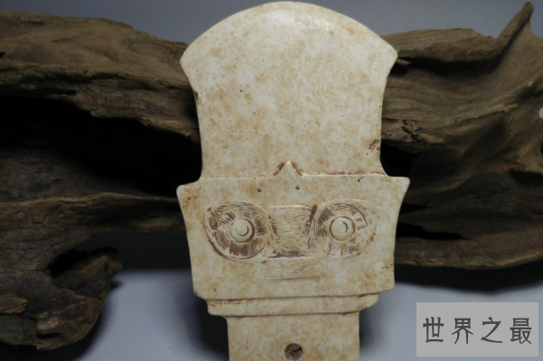 这个于1986年出土于浙江省杭州市良渚文化墓地第12号墓,现收藏在浙江省博物馆中的玉器,钺身通长17.9厘米,上宽14.4厘米,刃宽16.8厘米,厚0.8厘米,为青玉制成,在两面刃的上部各雕有浅浮雕神人兽面纹,有纹饰的玉钺目前仅此一件,对了解此类器物的用途和定名等问题有重要的价值。2013年国家文物局将其列入禁止出国(境)展览文物。
