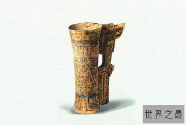 这个高30.5厘米,于1976年在河南安阳市殷墟妇好墓中出土的商代晚期象牙杯,目前收藏在中国社会科学院的考古研究所内,因杯身镶嵌有绿松石而得名,整体精美完好,是中国工艺美术史上光辉的一笔。