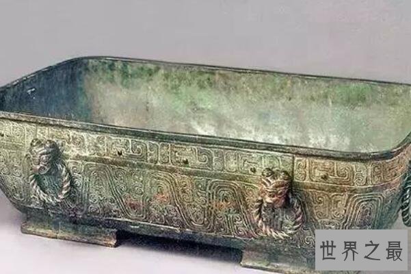 这个首批禁止出国(境)展览文物,于晚清时期出土在宝鸡,而这个奇特的类似浴缸形状的盛水器为商周时期制造,在盘内的底部还专科有111个铭字,主要讲述的是虢国子白出战并荣获战功的事情,是西周金文中的精品。