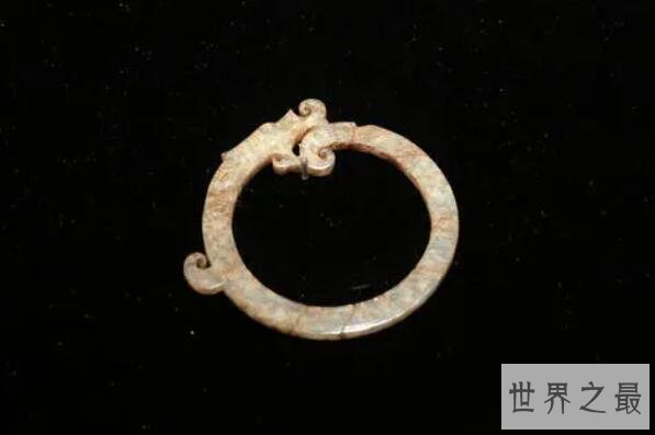 这个出土在内蒙古赤峰市翁牛特旗赛沁塔拉村的新石器时代玉器,目前收藏在中国国家博物馆内,整体造型类似甲骨文中的“龙”字,它的发现充分印证了中国渊源流长的玉和龙文化,并一度有着“中华第一龙”的称誉。