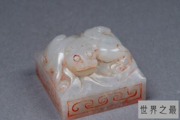 这个于1968年出土在陕西咸阳市韩家湾公社的西汉玉器,目前这个由纯净无暇的和田羊脂白玉打造的玉器收藏在陕西历史博物馆,玺钮雕刻成了匍匐的形象凶猛的璃虎形,在底面刻有皇后之玺四个篆字,对研究秦汉帝后玺印有着十分重要的价值。