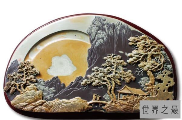 这个以四川攀枝花市平地镇、大龙潭乡境内悬崖峭壁之中石材为砚台主材,经过精细雕刻而制成的砚台,因石材富有眼、线、纹等众多石色,绚丽丰富的石晶,致密细腻的石质而有着中国彩砚的美誉。