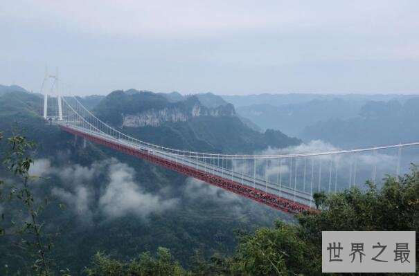 详情:这座大桥位于湖南省湘西土家族苗族自治州境内,位于德夯大峡谷之上,是包头到茂名高速公路的关键工程,于2007年10月份开始兴建,2012年3月正式通车运营。