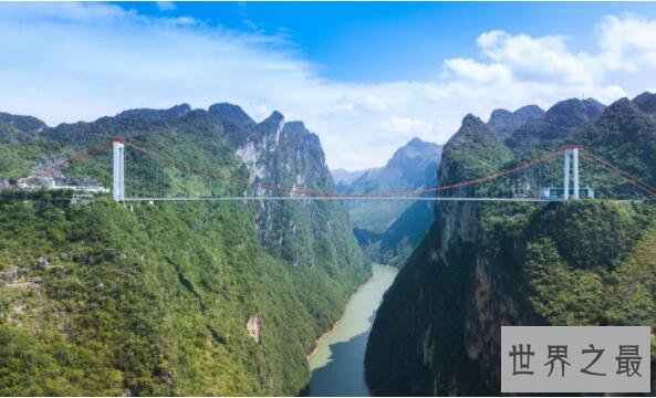 详情:这座大桥于2005年10月份正式开工建设,2008年7月完工,位于贵州省关岭县与晴隆县交界的北盘江大峡谷,跨度636米,这座大桥目前是我国已建成跨度最大的钢桁梁悬索桥。