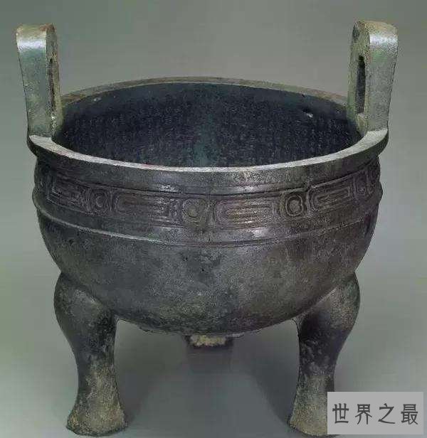 该鼎是西周晚期周宣王年间铸造的鼎,毛公鼎于清朝道光年间在陕西岐山县董家村村民在地里挖出。毛公鼎高54厘米,重34.5公斤,身形大口圆腹,整体十分浑厚古朴,标志着青铜器已从浓重的宗教神秘色彩时期淡化出来,过渡到了人文生活气息。毛公鼎的高度与重量不及其他鼎,但是鼎上刻的铭文确实带着铭文的青铜器中最多的,有32行499字,铭文内容是册命书,全铭文辞精妙而完整,古奥艰深,是西周散文的代表作,被誉为“抵得一篇尚书”。现藏于中国台北故宫博物院。