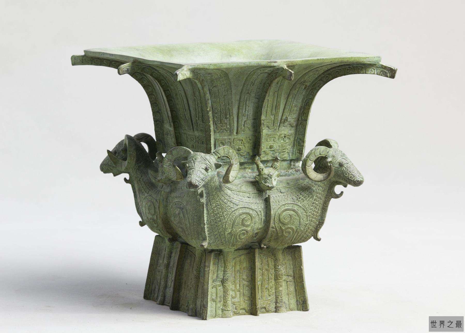 排行榜,品牌排行榜四羊方尊于1938年出土自湖南宁乡县黄村,是我国现存商器中最大的方尊,它的高58.3厘米,约重34.5公斤,外形上看是方口,长颈,大沿,圆圈足,瓶颈部以三角夔纹和兽面纹雕饰,瓶肩高浮雕蛇身有爪的龙纹,肩部四个角是四个卷角羊头,羊在古代中寓意着吉祥,方尊腹部即为羊的前胸,羊腿则雕在方尊的圆足上,羊的前胸和颈背部装饰着美丽的长冠凤纹,圈足上是夔纹,全身饰有细雷纹,给人雄浑厚重之感。方尊中四羊、四龙的相对造型展示了商周时期酒礼器的中的至尊之气,这样的青铜市场上不许流通。