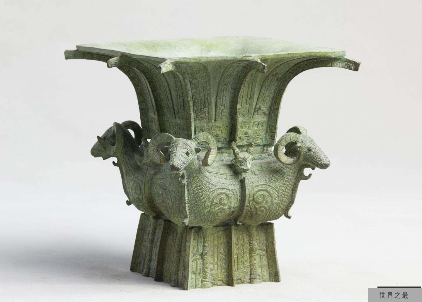 “尊”是古时候的一种盛酒器。它的外形特点通常是圆形、鼓腹、大口,但四羊方尊确实罕见的方形尊。