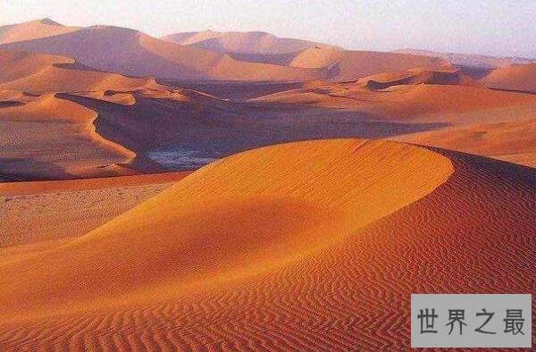 鲁卜哈利沙漠是一片总面积达65000平方千米的世界上最大的流动沙漠,这片沙漠占据了阿拉伯半岛一半的面积,成为世界上最大的沙漠,沙漠中拥有很多平行排列的打啥球,有些沙丘甚至高达300米,近乎一座沙山,这片沙漠也因富含氧化铁而沙子呈现红色。