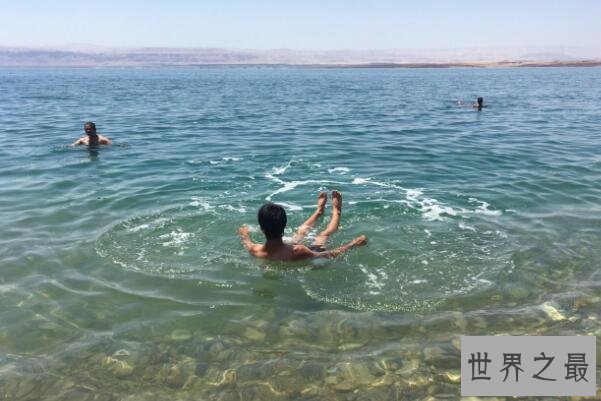 死海的水含盐量很高,死海水的比重是1.17~1.227,而人体的比重只有1.02~1.097,因为死海水的比重超过了人体的比重,所以人就不会沉下去。