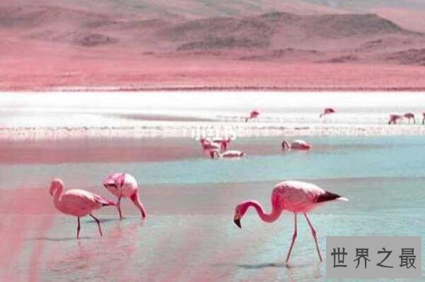 红湖又叫科罗拉达湖。主要由于湖水含有红色矿物质,因此从远处往湖望去,会看到湖水一片红色。位于湖中的硼砂组成白色小岛屿,散布在富含红色藻类红色的湖面上,构成一道美丽的风景线。为红色藻类加灰白硼砂的双色湖,世界五大最奇怪的湖之一。红湖还是火烈鸟的栖息地。湖中的藻类为罕见的火烈鸟提供了丰富的食物,所以它们都会在湖边做窝。除此之外,还有其他超过50种鸟类也将自己的家安在红湖。