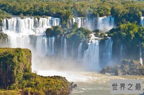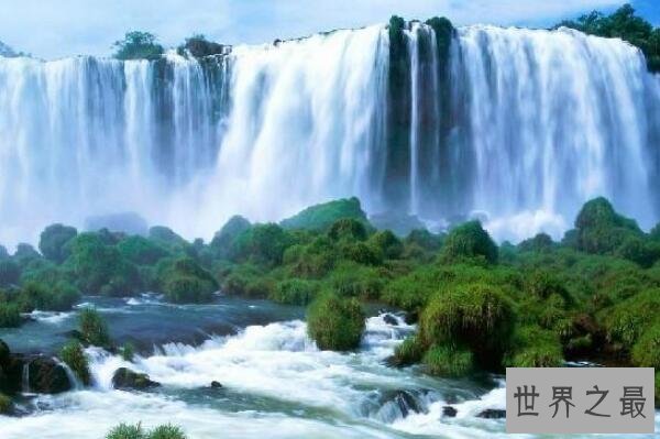 伊瓜苏大瀑布是世界上最宽的瀑布,也是世界上最大、最壮观的瀑布之一,瀑布平均落差75米,巨流倾泻,气势磅礴,瀑声震耳欲聋,景象蔚为壮观。