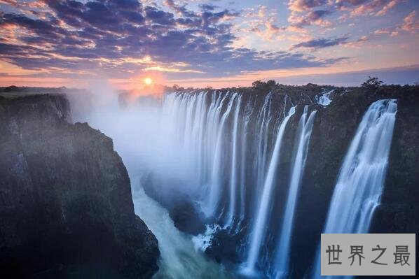 维多利亚瀑布是以英国女王的名字命名的,瀑布从悬崖边飞流直下,气势磅礴,景色极为壮观,每当新月升起时,水雾中映出光彩夺目的月虹,非常美丽迷人。
