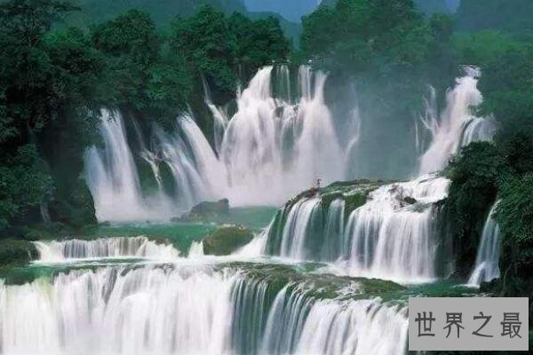 德天瀑布是亚洲第一大跨国瀑布,年均水流量约为贵州黄果树瀑布的三倍,瀑布从高达50米的悬崖上倾泻而下,撞在坚石上,水花四溅,如飞珠溅玉,神奇而美妙,这里还是是《酒是故乡醇》和《花千骨》的取景地之一。