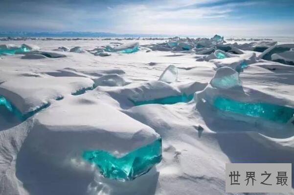 贝加尔湖是世界十大水上奇迹之一,贝加尔湖的水资源储量超过了整个波罗的海的水量,在世界上是首屈一指的,冬季湖水结冰后,春季由于某种原因造成了裂缝,形成了美丽的绿松石冰。