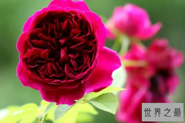 莎士比亚2000是非常鲜艳的紫红色,香味是非常古典的老玫瑰香味,非常浓郁,闻着这花香,非常容易上瘾,开花很勤,种上一株能看到满园的红色、能闻到馥郁的香味。