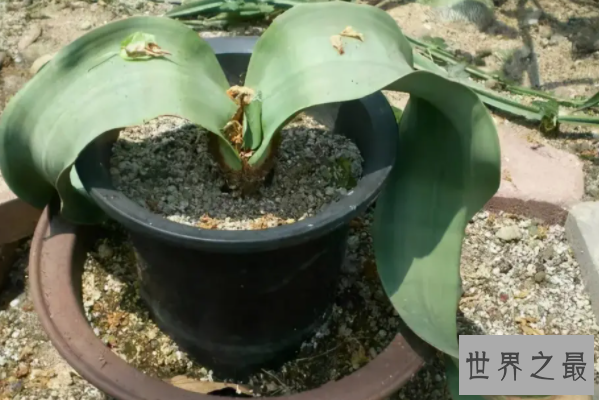 百岁叶有着树桩一样的茎,高只有30厘米,直径却能达到60厘米,和其他树的叶子不一样的是,百岁叶一生只有两片叶子,陪伴它从出生到生命的尽头,所以叫它百岁叶,是植物里最长寿的叶子。