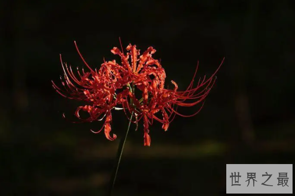彼岸花又名曼珠沙华,据说彼岸花是开在黄泉路上的都一种花,其花香能唤醒死者生前的记忆,一开始曼珠沙华是白色的,因为吸收了幽灵之后就变成了红色的,有着花开叶落,叶绽花萎的特性,象征着永远不能相见的爱人,所以它的话语是“无望的等待、相互思恋”。