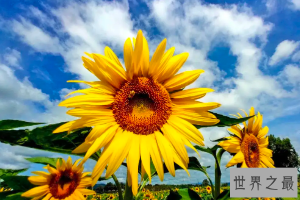 向日葵曾经是一位仙女,因为暗恋太阳神阿波罗,所以每天望着太阳,后来众神怜悯她就把她变成了向日葵,永远向着太阳生长,向他诉说她对他的爱恋,可能太阳神永远不知道有这样一个人爱着他,所以向日葵的花语是“没有说出的爱、沉默的爱”。