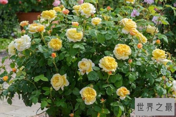 这种由英国奥斯汀于2000年培育而成的蔷薇科蔷薇属植物,有着良好的抗病性和适应性,在开花时一朵花的直径大约在11厘米左右,由40片花瓣组成,通常会成群且多季节重复开花,并会散发着出浓郁的玫瑰香味。