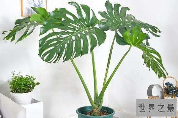 龟背竹是有着奇特叶型,叶面有着呈裂纹状的空洞,使得叶片看起来极像龟背,也叶面常年呈碧绿色,且植株极为耐荫一次是备受欢迎的适合室内养的十款中大型绿植之一,放在室内与原木色家具进行搭配,可谓是充满了自然文艺的气息。