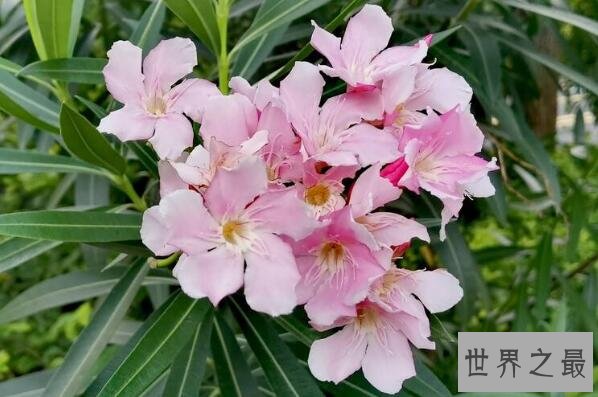 夹竹桃的花朵大而艳丽,具有很高的观赏价值,但夹竹桃全株有毒,还是最毒的植物之一,夹竹桃中含有的毒性极高,有些毒素甚至是致命的,就算花和叶子枯干后毒性也依然存在。