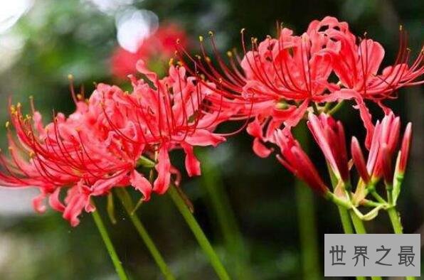 彼岸花也叫曼珠沙华,相传这种花盛开于黄泉路上,所以也被称为“黄泉之花”,它的花语是悲伤回忆,也有分离、伤心和死亡之美的寓意。