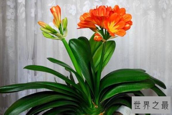 君子兰是原产于南非南部的一种著名观赏花卉,其花朵不仅具有很高的观赏价值,而且它在生长发育的过程中还能够吸收二氧化碳释放氧气,君子兰肥厚的叶片还能够空气中的粉尘和灰尘,减少室内空气的含尘量。