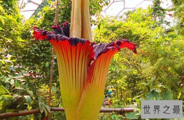 巨型海芋也叫尸臭花,也是世界上最恐怖的十种花之一,和很多花不同的是,它并不会散发香味,而是散发出一种难闻的腐肉味道,花盛开时更是奇臭无比。