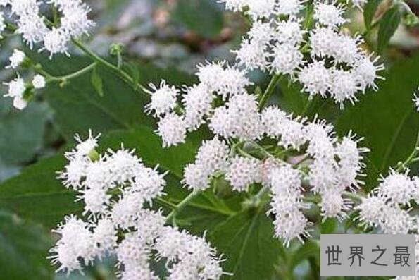 白蛇根草是原产于北美洲的一种剧毒植物,其叶形尖细如草,开出的花呈白色,牲畜食用后会患上一种叫做“震颤病”的疾病,人如果喝了患有这种病的牛产的奶也会感染上致命疾病。