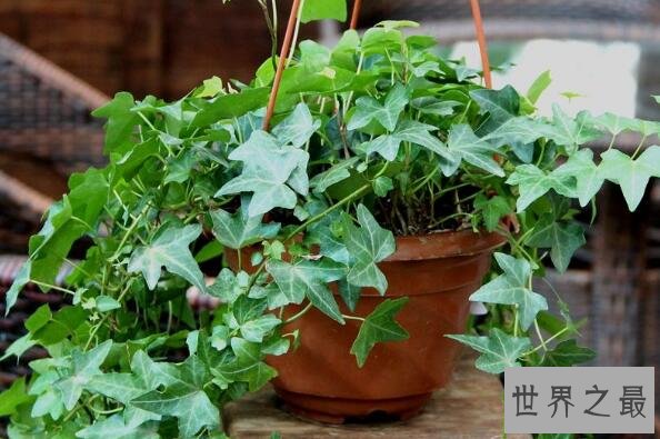 常春藤叶形美丽,而且四季常青,经常被用来装饰和美化环境,不仅可以种植在室外的假山或者墙边,也可以盆栽陈设于室内,常春藤的空气净化能力也非常强,能够吸收室内很多有害气体。