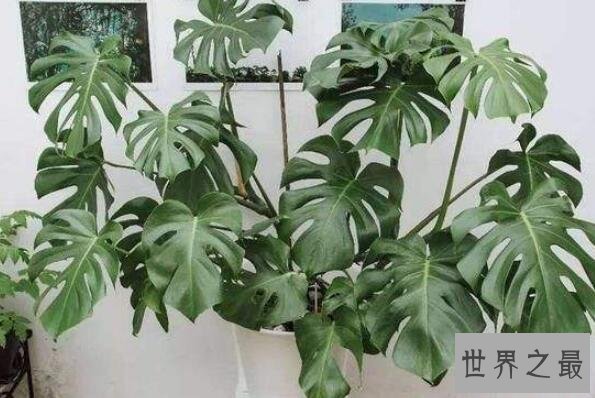 龟背竹是原产于墨西哥的一种很受人们欢迎的大型盆栽观赏植物,因其叶形奇特,和龟背非常相似而得名,龟背竹能够清除空气中的甲醛等有害物质,被人们称为天然的清道夫。