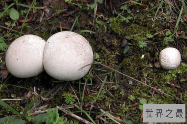 巨形秃马勃,属马勃菌类,典型的标本是类似足球大小,白色,目前发现最大的足足有5英尺长,50磅重。而且它的形状更像一个团,而不是一个球。但这种长相很奇特的蘑菇永远不可能看起来像一个倒置的梨,因为它没有其它马勃菌常见的那种无菌的根基部分。成熟的马勃菌轻轻一碰就会爆炸,且会炸出一种尘雾。巨型秃马勃多生在雨后,是一种不适宜食用的菌类。