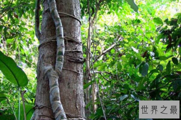藤本盼复是因为在热带雨林中,因树枝树叶繁茂遮住了大多数阳光,使得部分植物因为阳光接受不足导致无法直立生长,智能依靠周围的大树,攀附在它们的树干上去吸收更多的阳光,并不像绞杀现象一样,而是几种植物和睦的在一起生活。