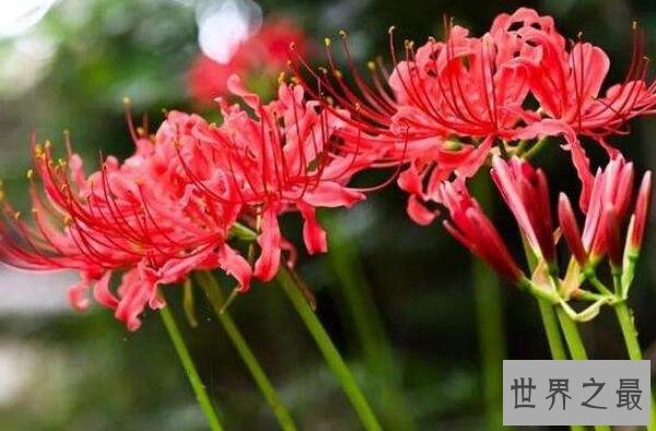 彼岸花也被称为曼珠沙华,是原产于我国长江流域的一种花卉,彼岸花的花朵形态美观,颜色艳丽,是著名的观赏花卉,也是世界上十大最漂亮的花之一。