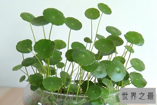 铜钱草原产于欧洲,如今在世界各地都有分布,其叶子的形状既像一片片小小的荷叶又像一枚枚铜钱,非常漂亮,铜钱草也很容易养,只需要经常蓄水就能生长的很好。