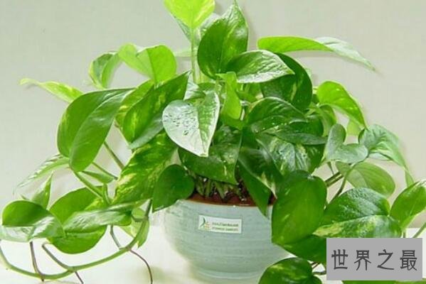 绿萝是原产于印度尼西亚热带雨林的一种藤本植物,它非常好养,生命力非常顽强,遇水即活,有着“生命之花”的美誉,把绿萝摆放在卧室中,可以吸收空气中的有害气体,净化空气。