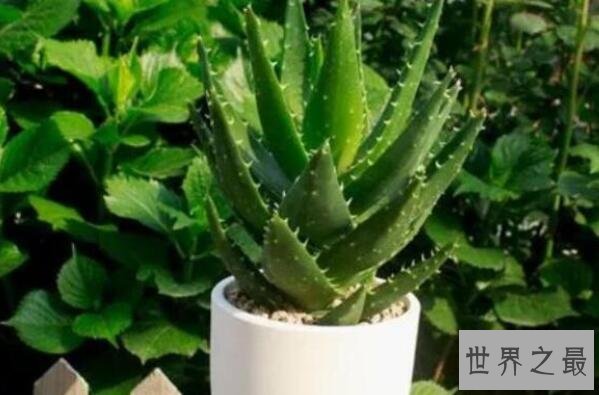 芦荟是原产于非洲热带地区的一种具有很高经济价值的植物,可以被用于食品、美容、医药等多个领域,也可以盆栽观赏,摆放一盆芦荟在卧室中,可以吸收卧室中的甲醛、二氧化碳等有害气体,还能够吸附卧室空气中的灰尘。